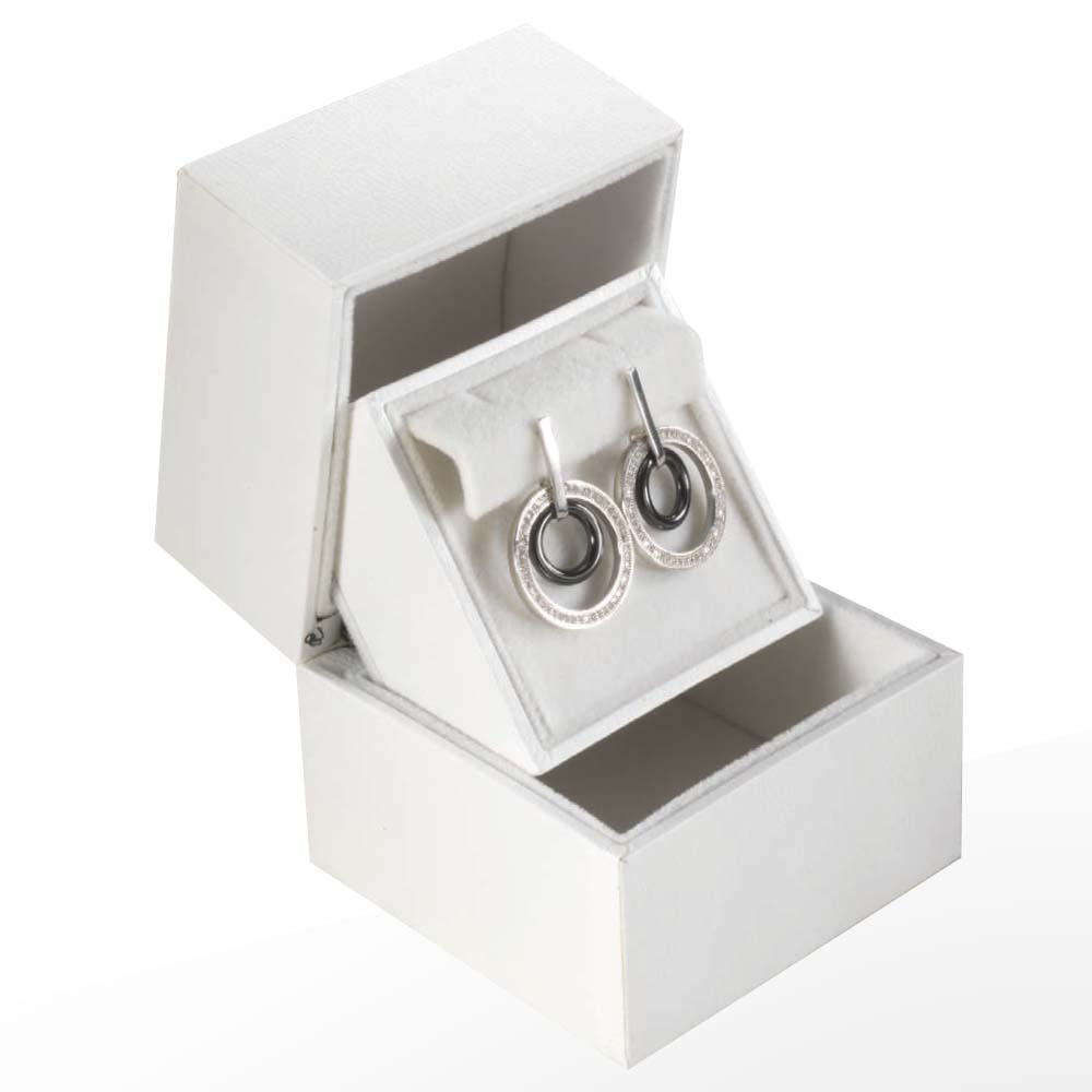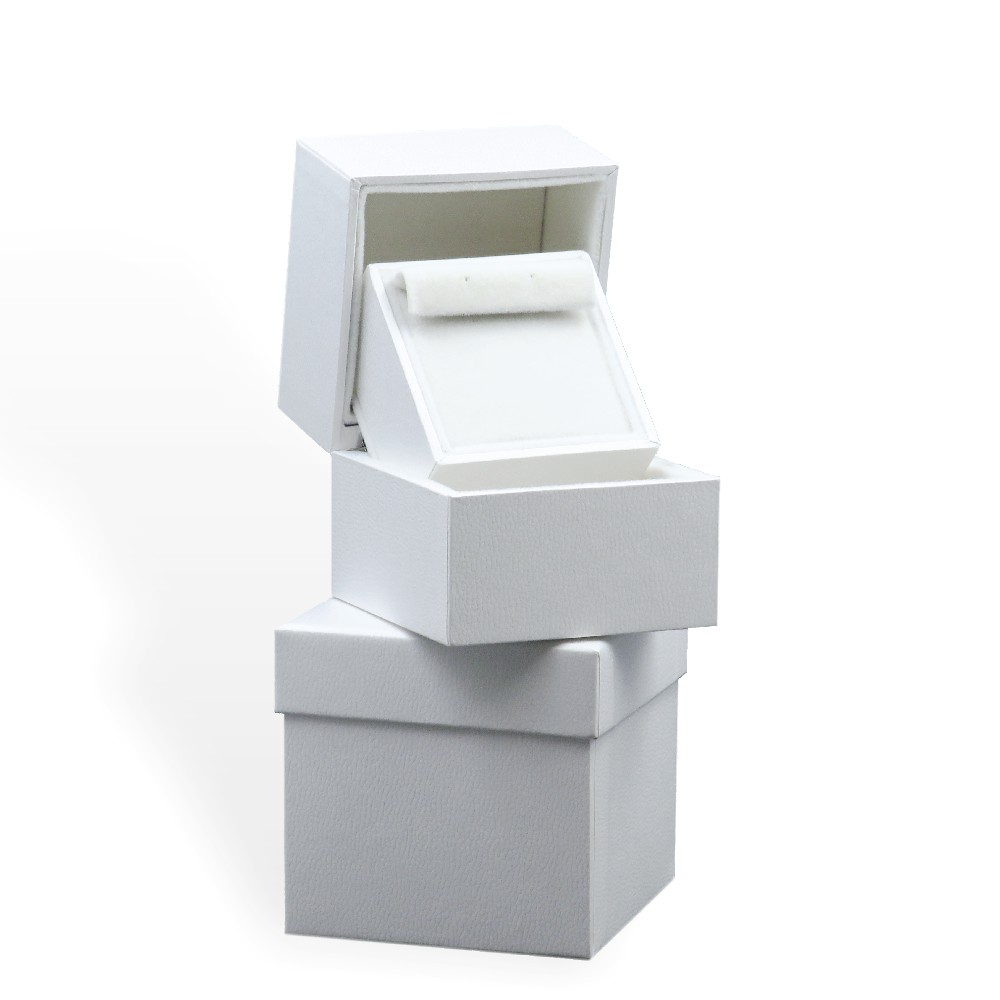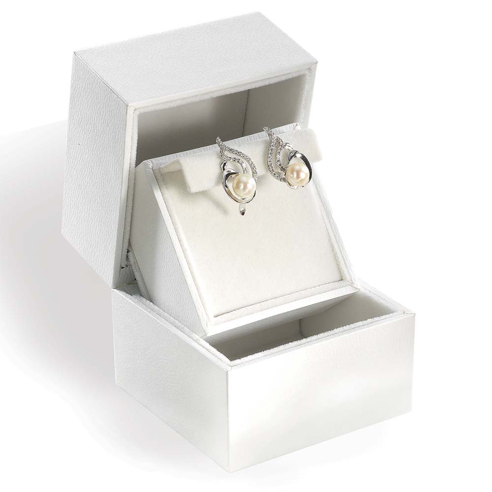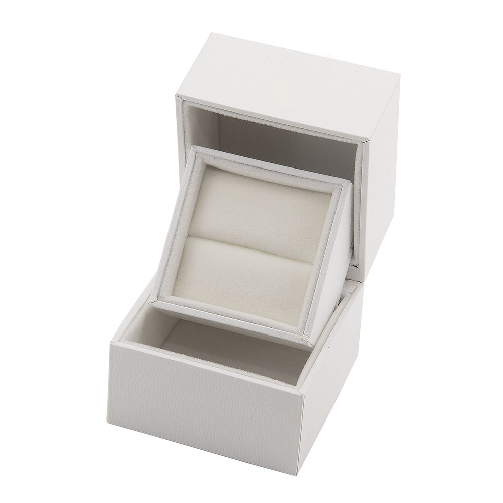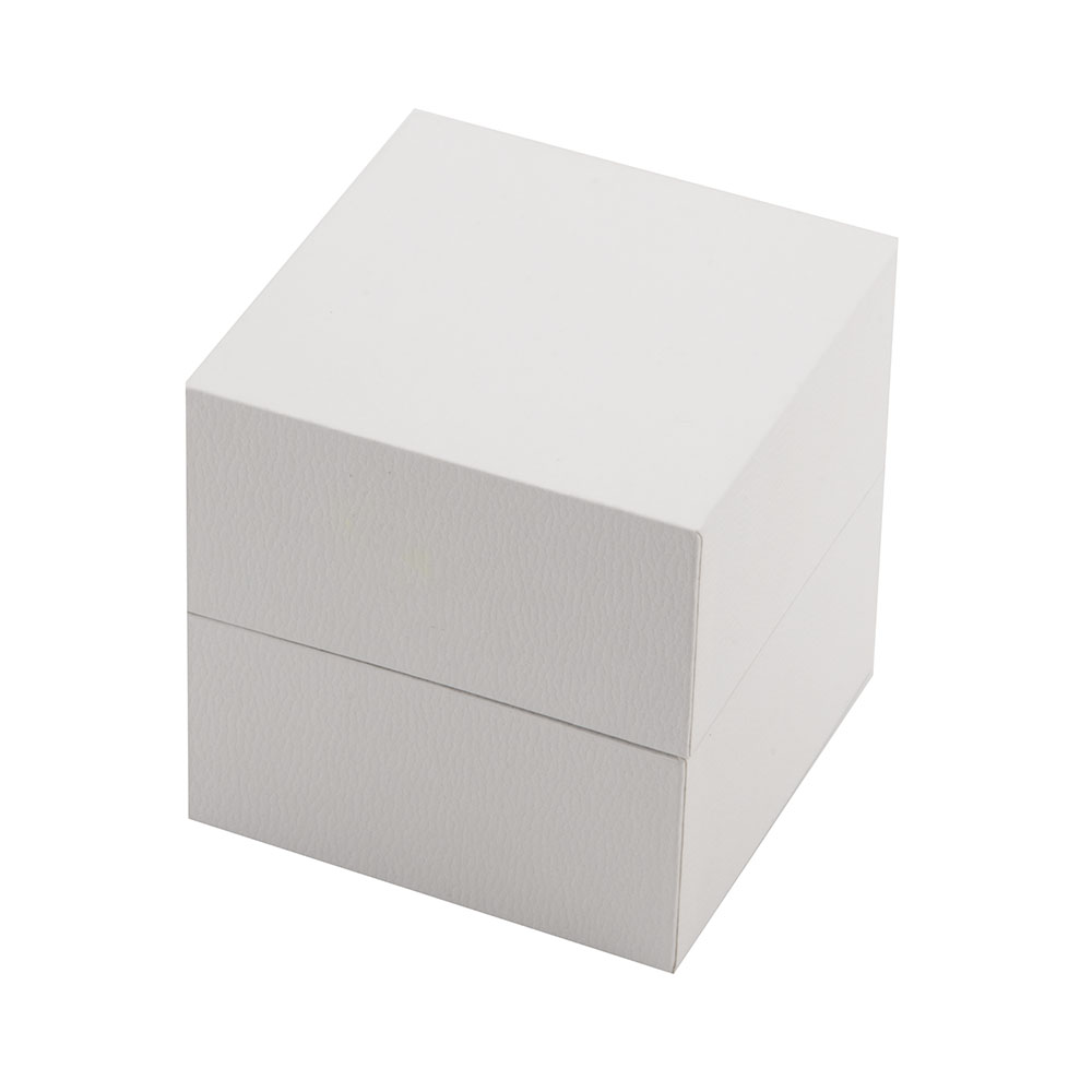 Astuccio incernierato, in cartoncino goffrato colore bianco e goffratura ad effetto pelle