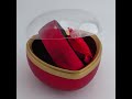 Astuccio incernierato con controscatola, in resina colore rosso , con rosa interna a ribalta.