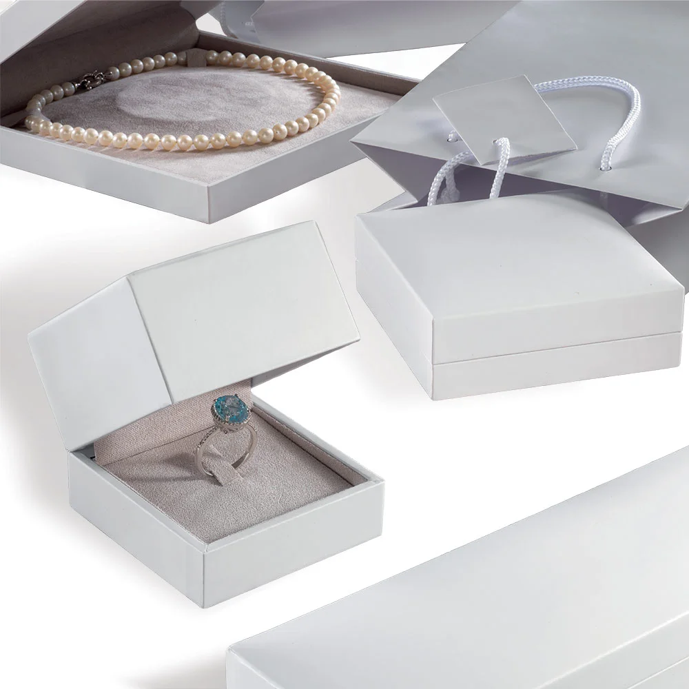 Astuccio incernierato, in soft touch colore bianco di qualità premium.