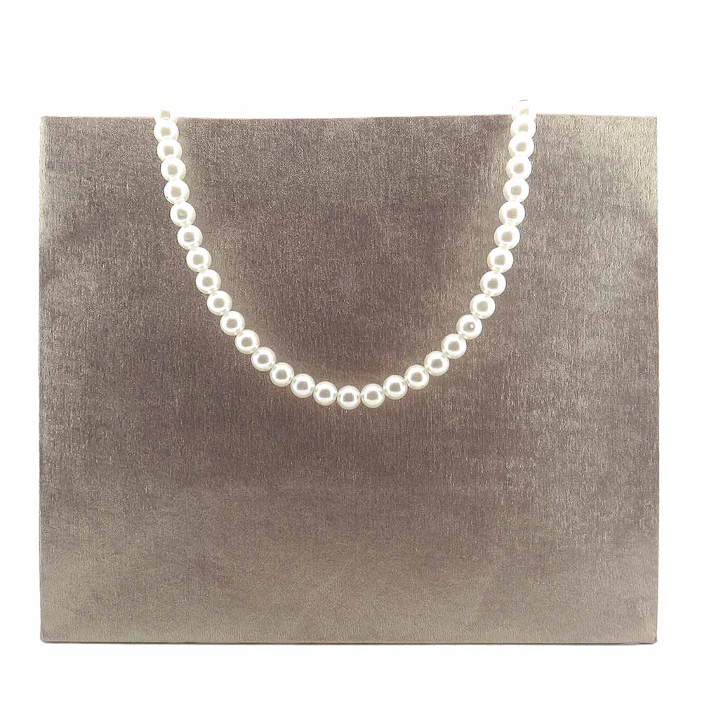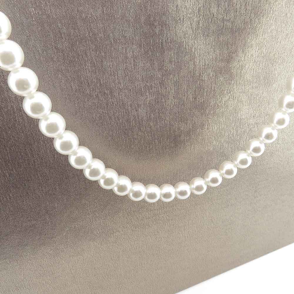Borsa extra lusso in tessuto con effetto platino e oro cangiante. Manico di perle utilizzabile come collana.