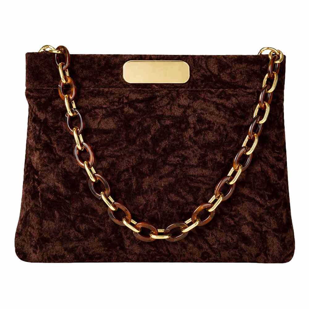 Borsa extra lusso in morbido velluto con effetto cangiante, eleganti cuciture sul risvolto, soffietto solo sulla base.