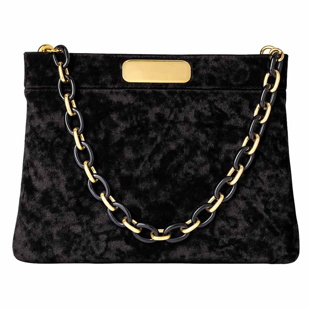 Borsa extra lusso in morbido velluto con effetto cangiante, eleganti cuciture sul risvolto, soffietto solo sulla base.