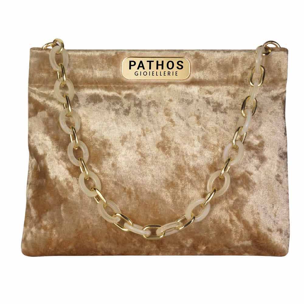 | Manico | Catenella metallica con anelli in materiale sintetico in tinta |