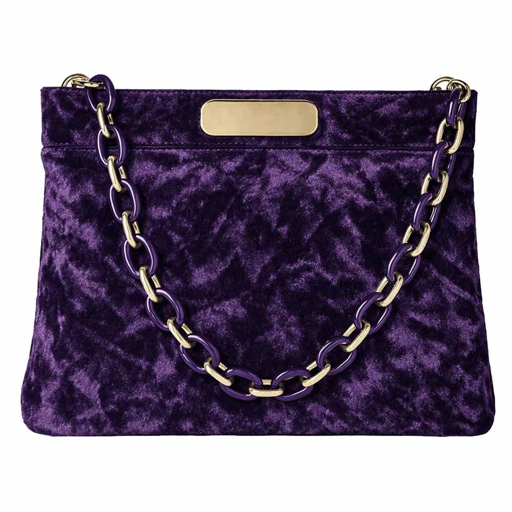 Borsa extra lusso in morbido velluto con effetto cangiante, eleganti cuciture sul risvolto, soffietto solo sulla base.